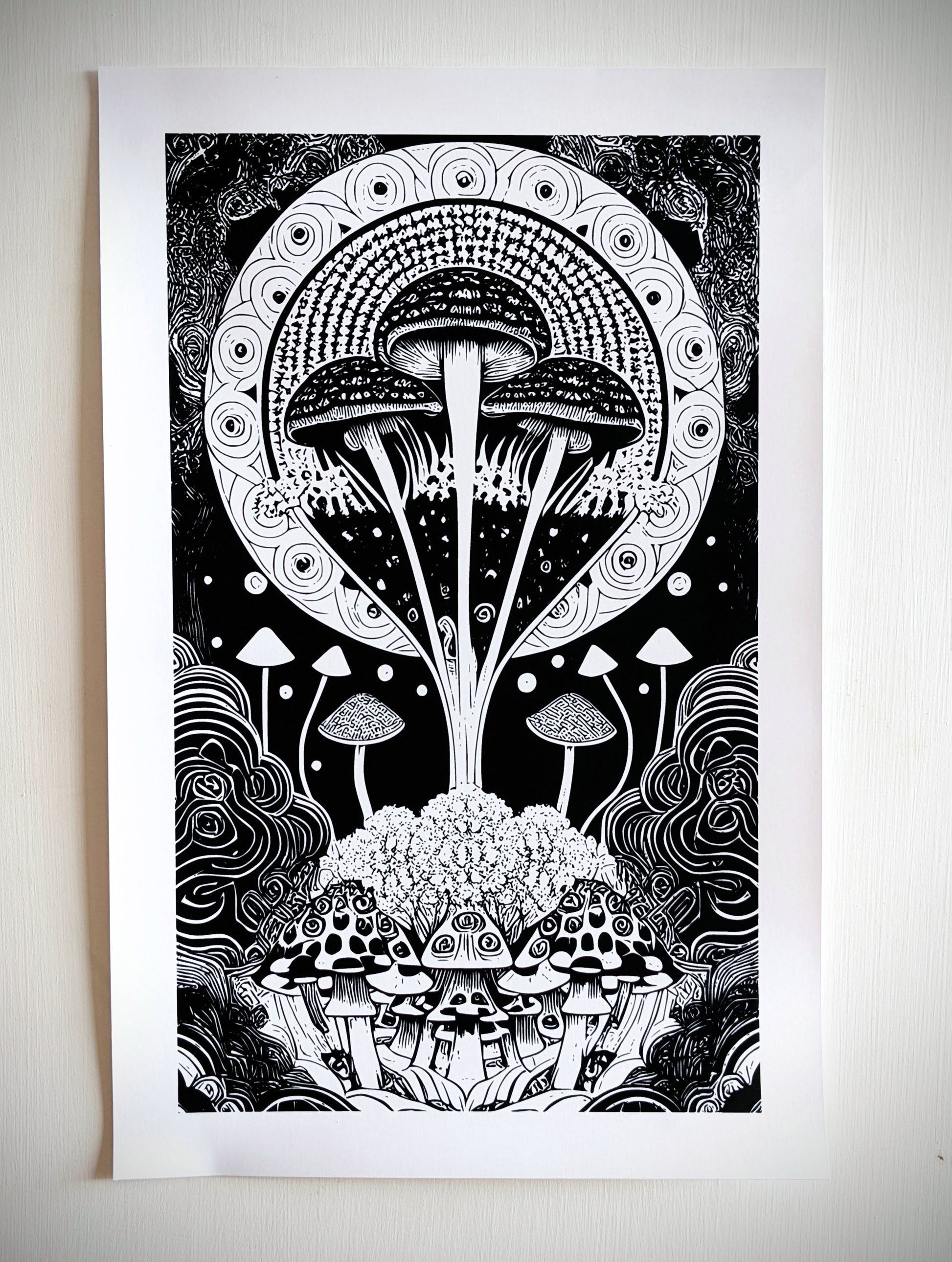 Our prints depict spectacular original psychedelic graphics, perfect for decorating rooms and clubs. The perfect symmetry and elegance of the designs allows their use even in formal environments, perhaps with a good minimalist frame.